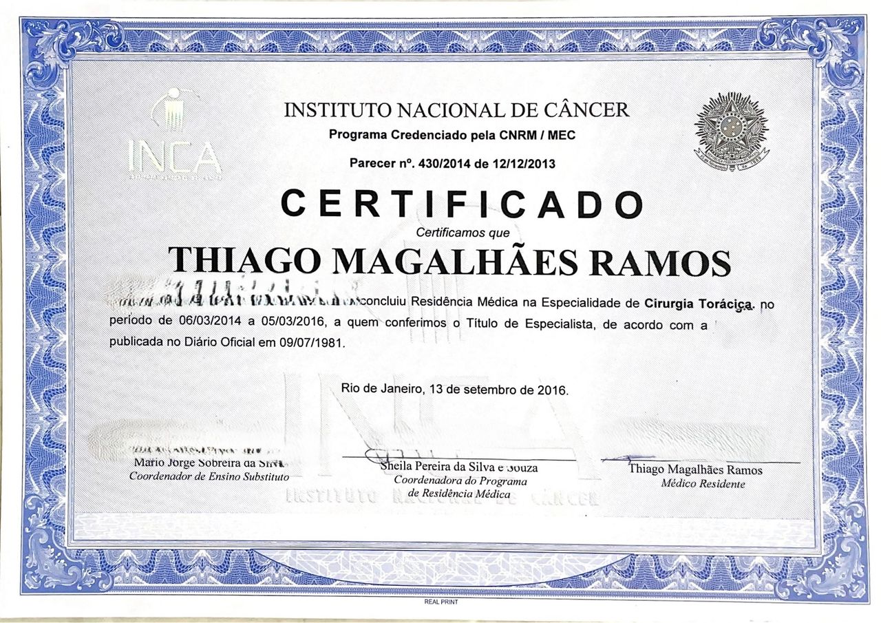 Sou cirurgião torácico com formação em dois dos mais renomados centros de formação do país: o Hospital Federal dos Servidores do Estado do Rio de Janeiro (HFSE) e o Instituto Nacional de Câncer (INCA).