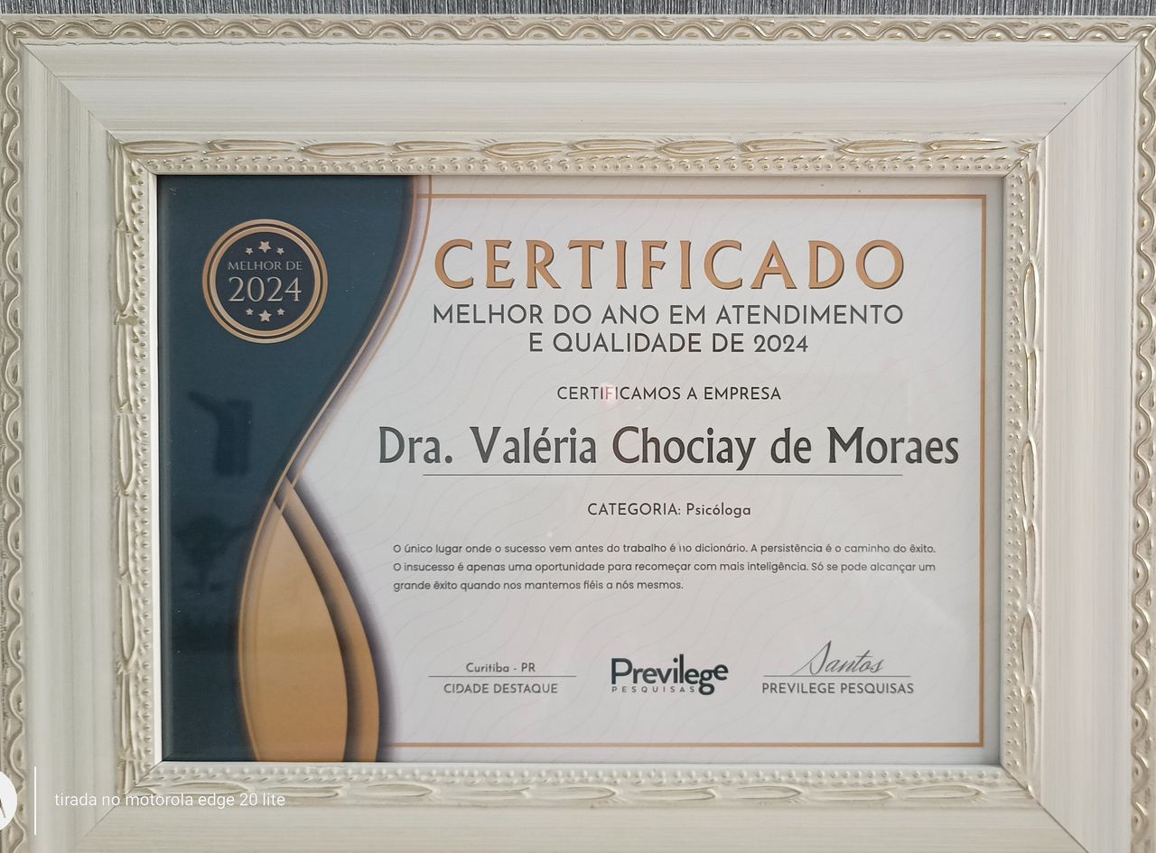 A Dra. Valéria Chociay de Moraes é uma profissional com uma formação notavelmente abrangente e integrativa, dedicada a promover a Saúde Mental e Física de forma holística. Como Psicoterapeuta e Especialista Comportamental, ela fundou a clínica Essência Saúde Mental e Física com a missão de oferecer um cuidado profundo e personalizado, reconhecendo a interconexão entre mente, corpo e emoção.