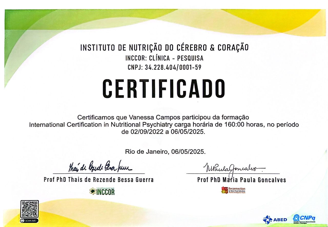 39 opiniõesSOU NUTRICIONISTA PÓS GRADUADA EM NUTRIÇÃO FUNCIONAL, FITOTERÁPICOS, PSIQUIATRIA NUTRICIONAL, PÓS GRADUANDA EM NUTRIÇÃO ONCOLÓGICA E ESPORTIVA E ESTÉTICA. SOU COMPLETAMENTE APAIXONADA POR NUTRIÇÃO. E MEUS PACIENTES PERCEBEM ISSO NO MEU ATENDIMENTO EMPÁTICO E ACOLHEDOR.
