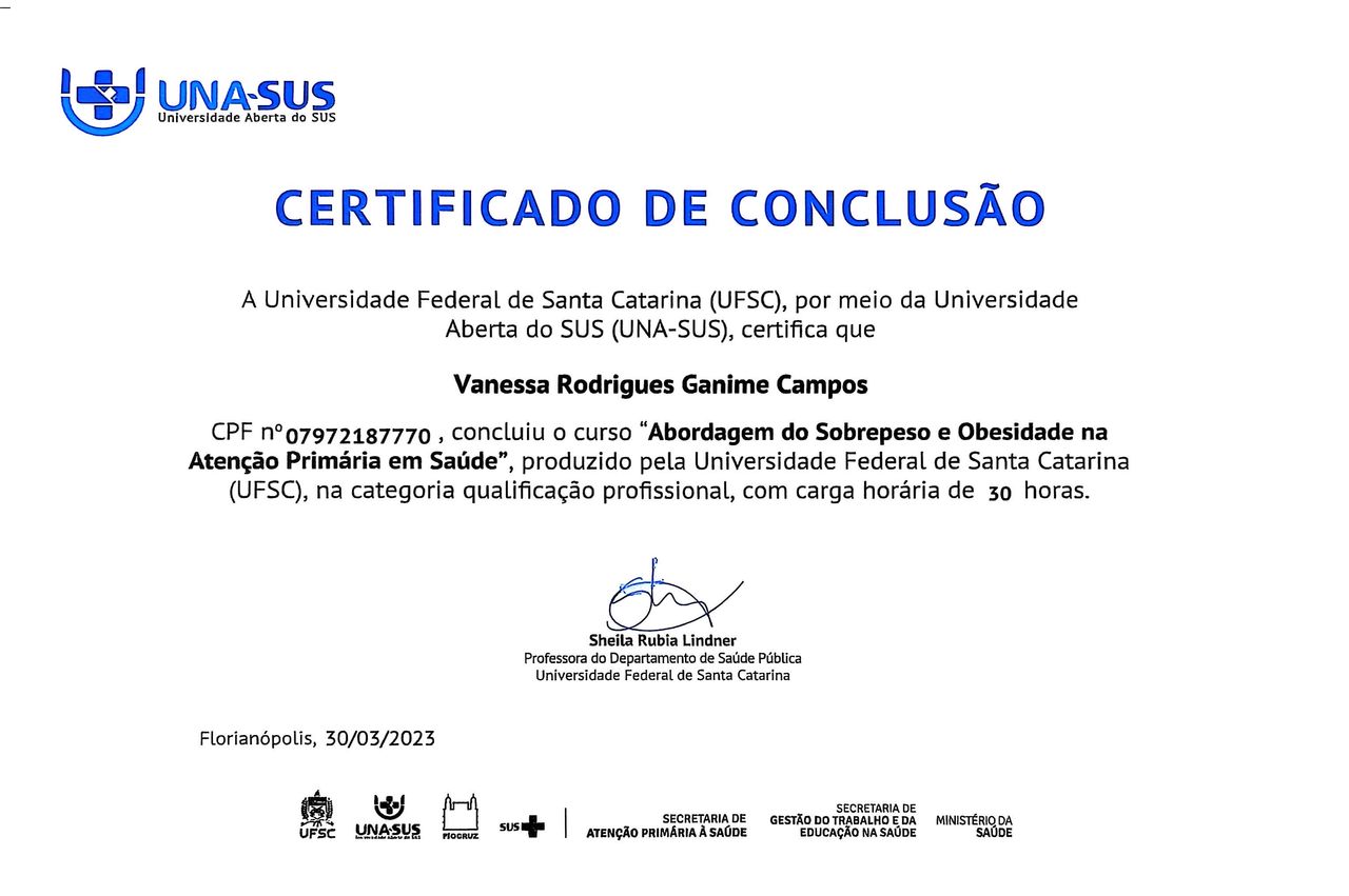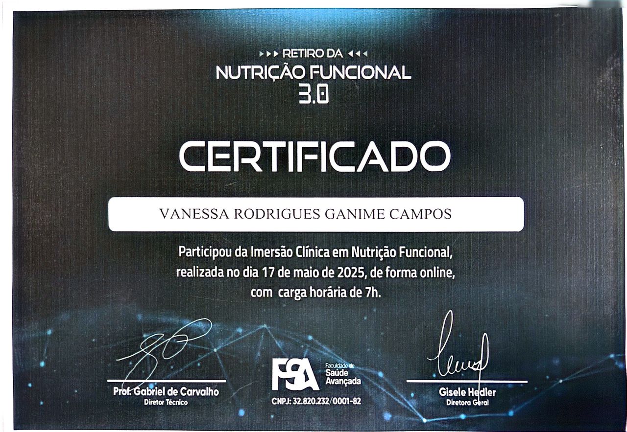 Bom dia só agradecer por tanto acolhimento na minha primeira consulta, saí do consultório com a certeza de que estou em excelentes mãos atenciosa, acolhedora, competência....Sou paciente oncológica e a nutricionista Vanessa foi uma das melhores escolhas que eu poderia ter feito. Total certeza de que terei excelentes resultados na minha saúde Gratidão