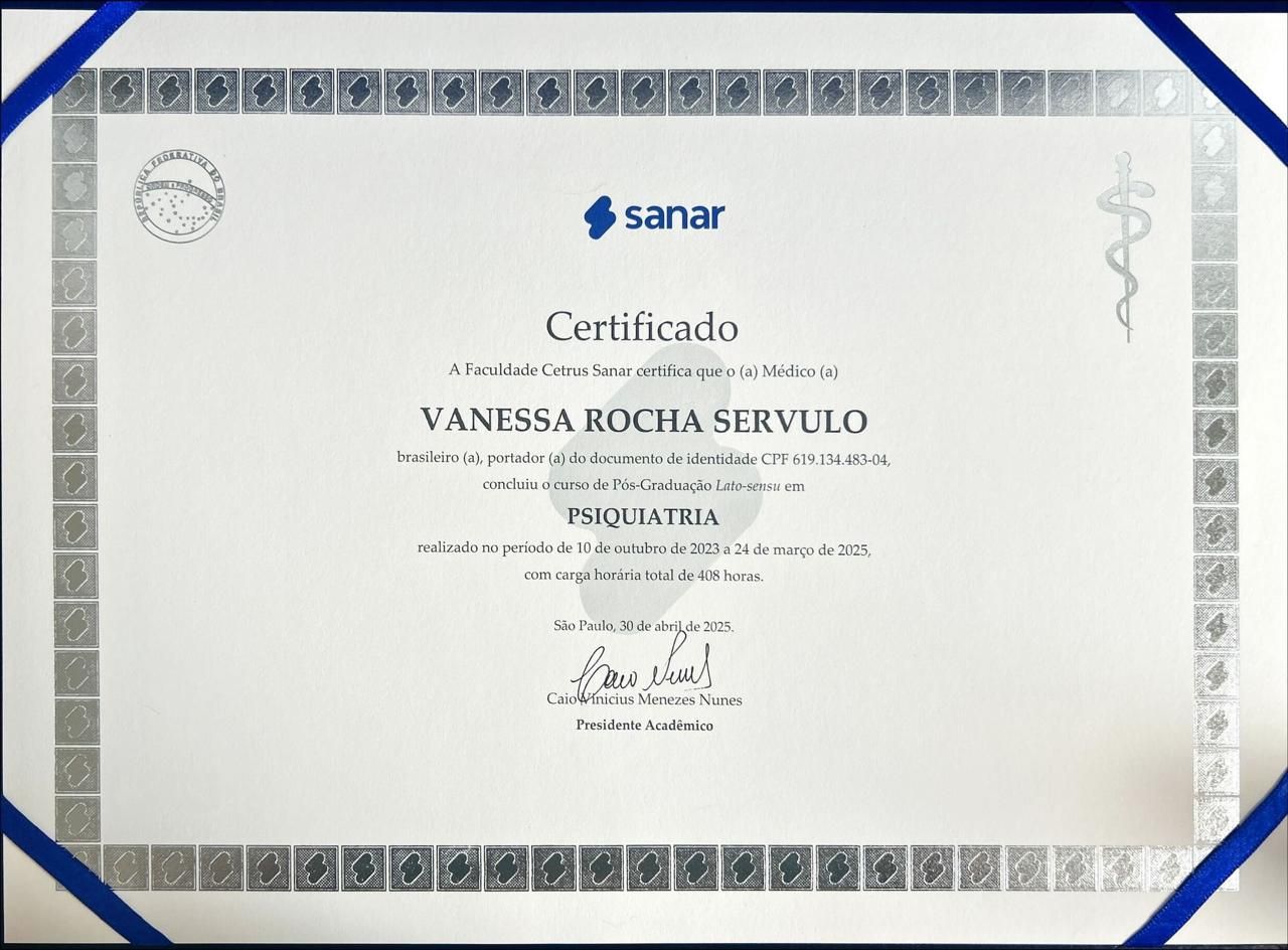 Vanessa foi a primeira psiquiatra que tive acesso e eu desejo que todas as pessoas tenham acesso a uma psi com ela, atenciosa, cuidadosa e acolhedora. Desde aprimora vez que fui atendida, senti que minhas dores nunca foram diminuídas. Eu recomendo dms