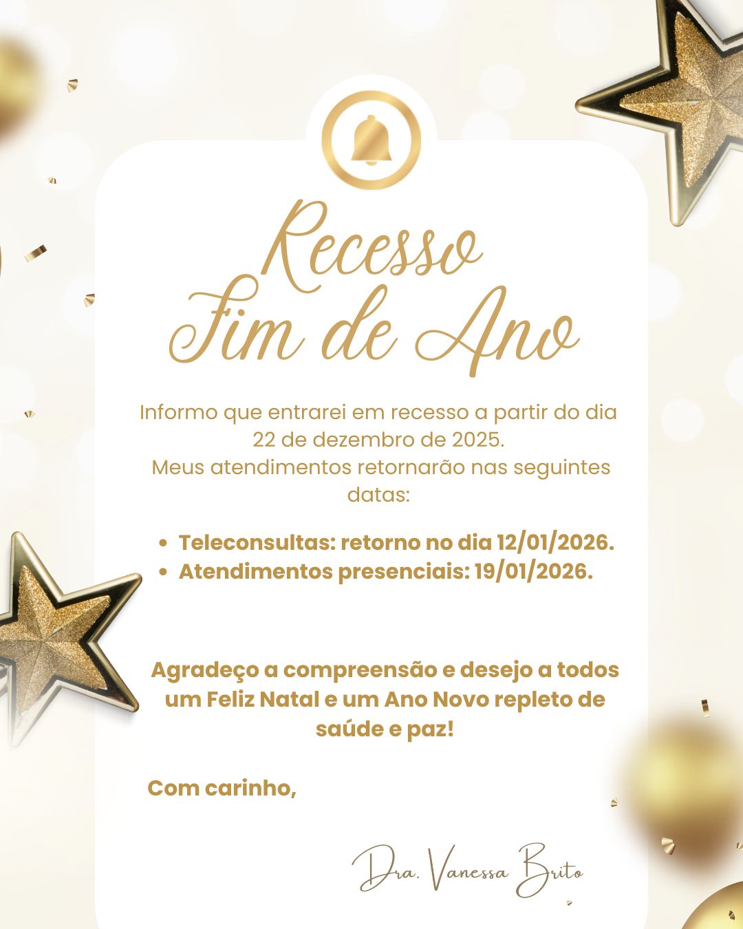Esse período de pausa é importante para descanso, reorganização e preparo para um novo ano de cuidados ainda melhores.