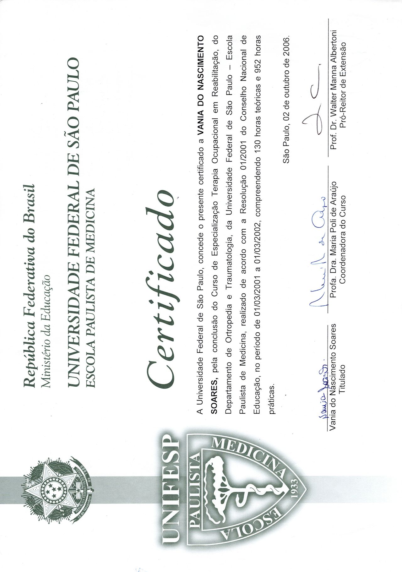 Pós Graduação em Reabilitação Física pela UNIFESP
