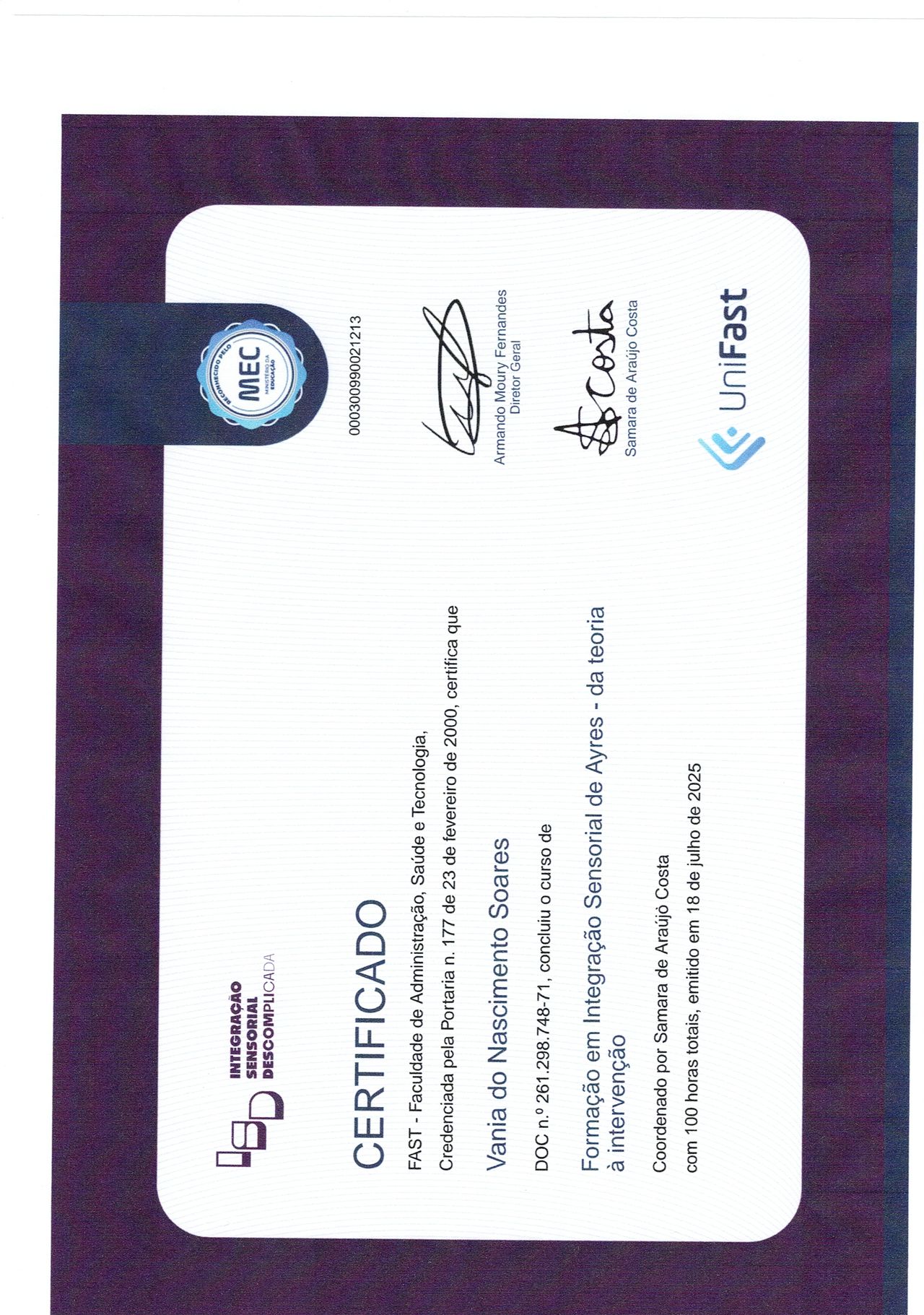 Formação em Integração Sensorial pela abordagem de Ayres ( MEC ).