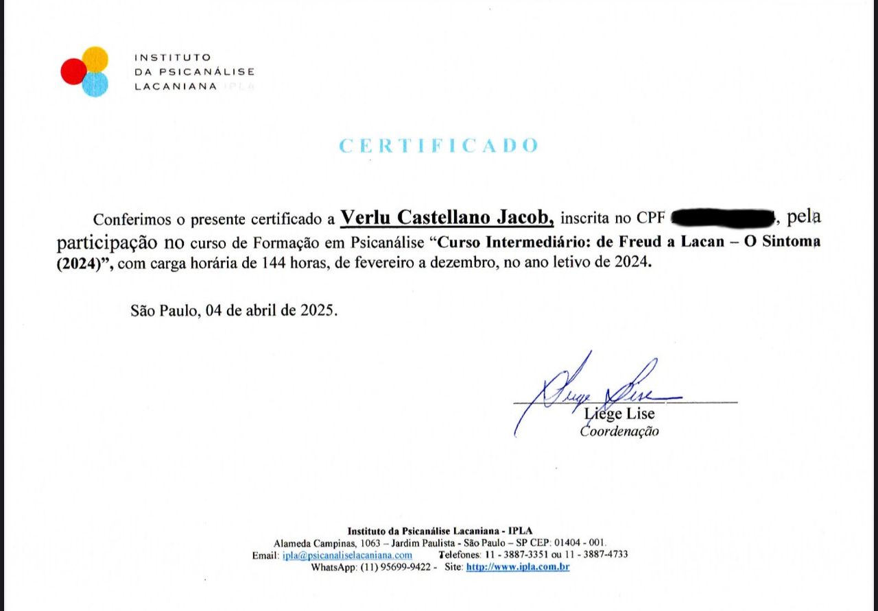 2 opiniõesPsicanalista Lacaniana e Contemporânea