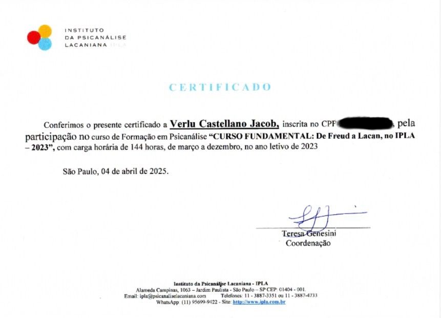 Att:João Carlos• Consultório online - atendimento virtual, exclusivamente. • Psicanálise •