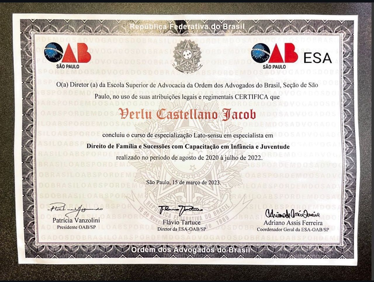 Número de registro: Certificado Apresentado