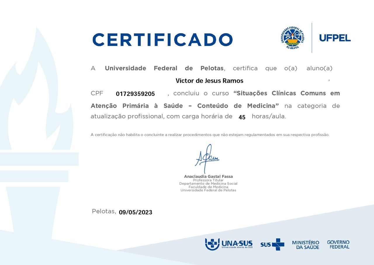 Tenho 30 anos, paraense raiz perdido no Rio Grande do SUl, médico formado pela UFPA com muito orgulho, monografia sobre morbi‑mortalidade por COVID‑19 em povos indígenas do DSEI Altamira. Concluíndo a pós-graduação em Medicina de Família e Comunidade pelo Programa Mais Médicos (UFSC/PMM) atendendo na Atenção Primária no contexto prisional (UBS Prisional PERG Rio Grande) e cursando pós‑graduação em Neuromodulação periferica e tratamento de dor. Atuei em urgência e emergência adulto e pediátrica (UPA Dr. Airton Varela – 2 anos; Unimed Litoral Sul – 1 ano), clínica em traumatologia (HPSM Mário Pinotti e HPSM do Guamá), transporte inter-hospitalar em unidade avançada. Tenho formação complementar em APS, investigação de surtos, cuidados paliativos e saúde de populações ribeirinhas e experiencia em tratamento de dor, saúde mental entre outros.