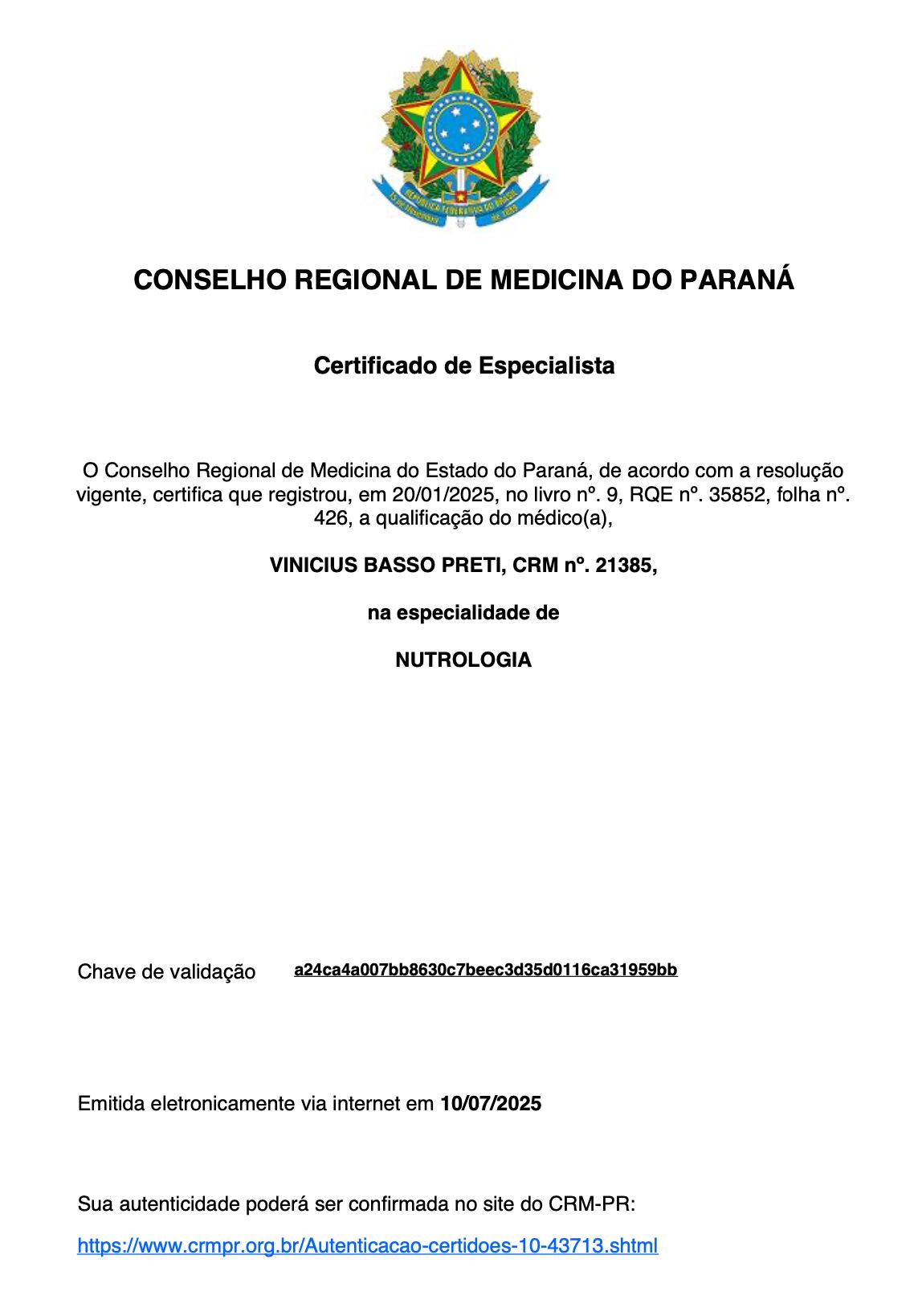 Número de registro: CRM PR 21385 - RQE Nº: 122 - RQE Nº: 35852
