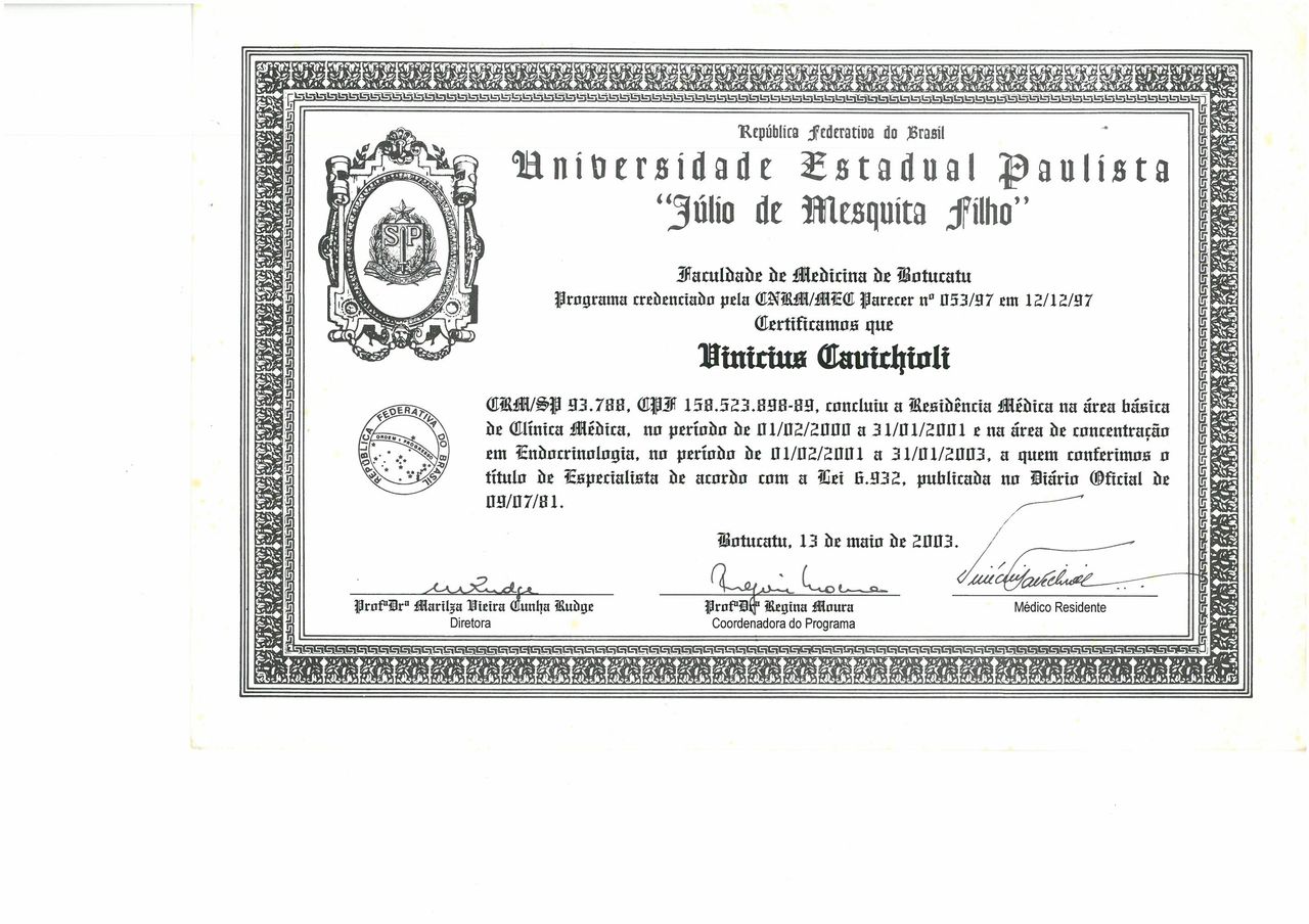 Número de registro: CRM SP 93788 Endocrinologia - RQE Nº: 27514 Medicina do esporte - RQE não encontrado