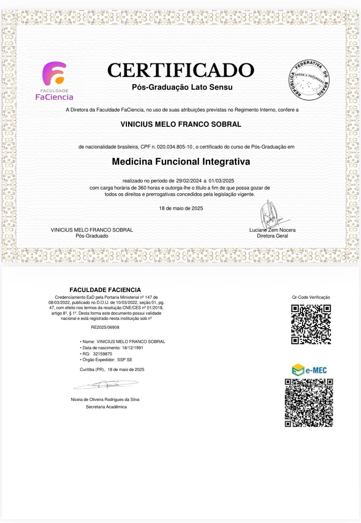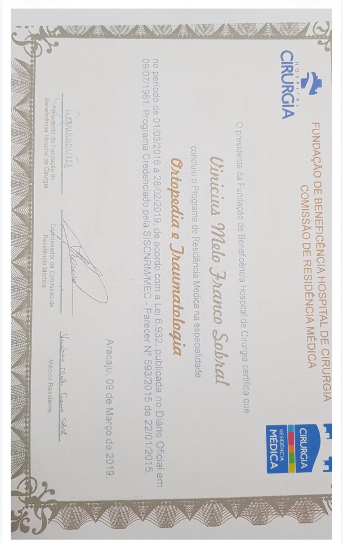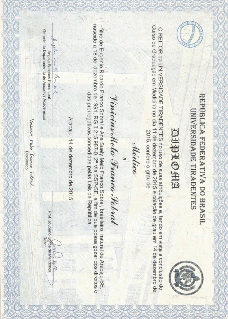 Sou médico ortopedista e traumatologista, formado pela Universidade Tiradentes, com residência médica no Hospital de Cirurgia. Também sou pós-graduado em medicina funcional integrativa pela Academia Brasileira de Medicina Funcional Integrativa.