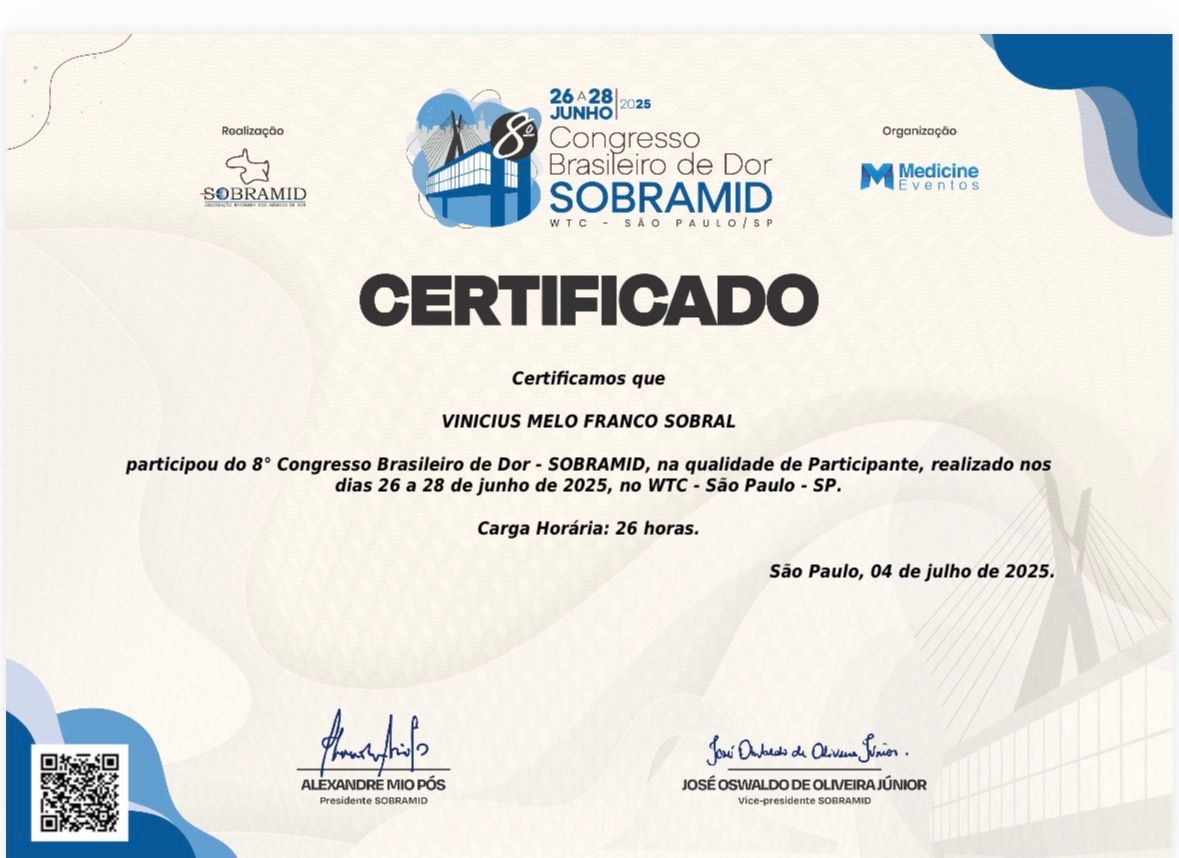 Você já passou por consulta com Dr. Vinicius Melo Franco Sobral? Conte aqui como foi. Outros pacientes vão te agradecer por ajudá-los a escolher o melhor especialista.