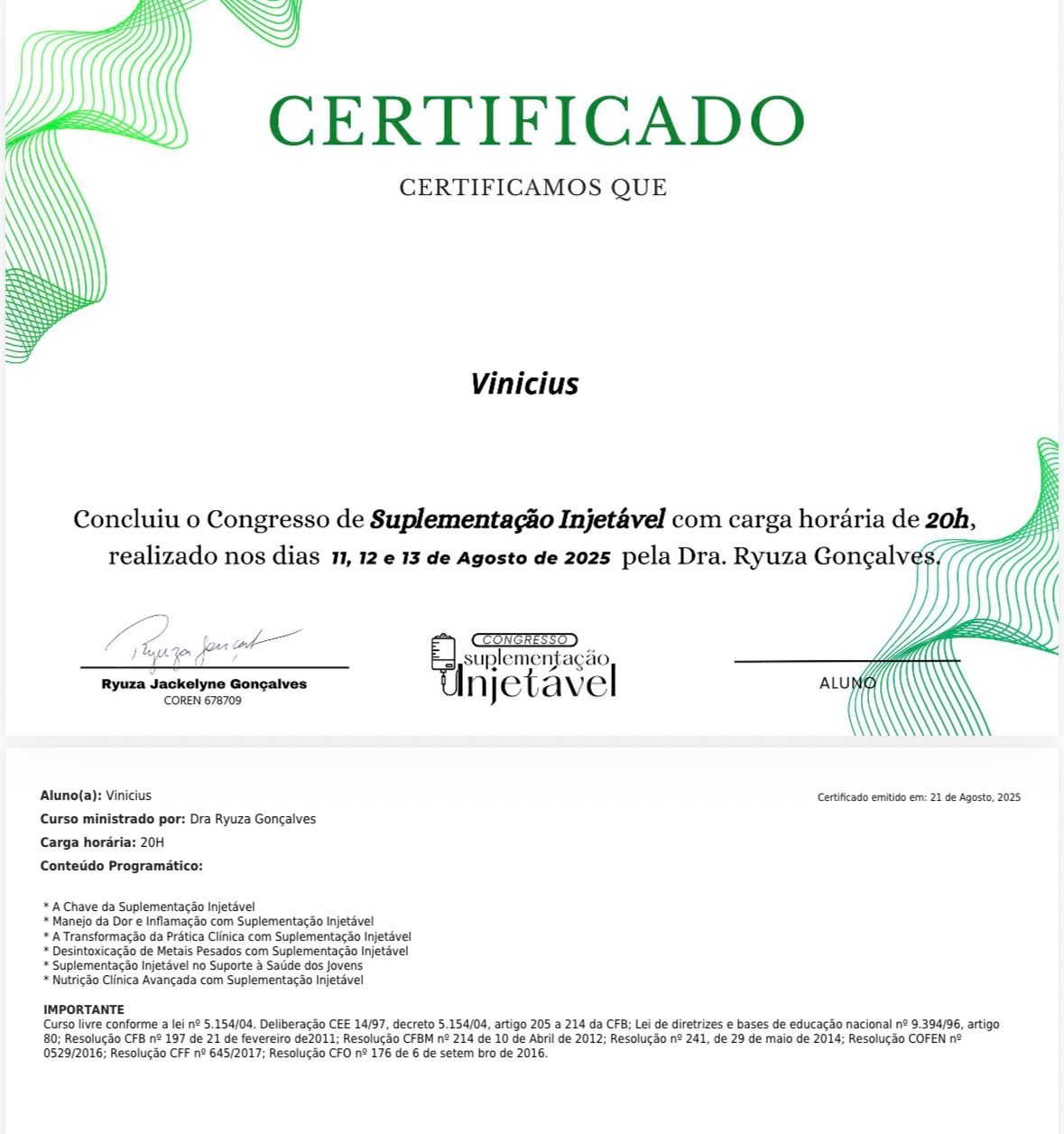 Além disso, dedico-me a melhorar a qualidade de vida das pessoas, auxiliando no controle de processos inflamatórios, na perda de peso e na hipertrofia muscular, promovendo saúde de forma integrada.