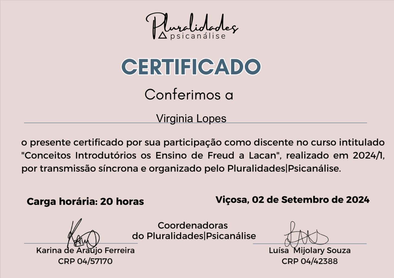 • Virgínia Lopes - Psicóloga online • Psicanálise •