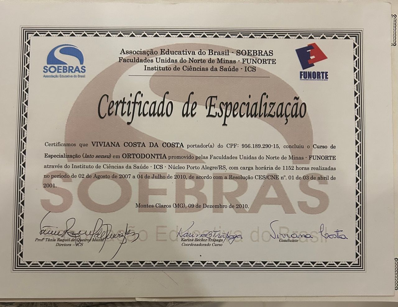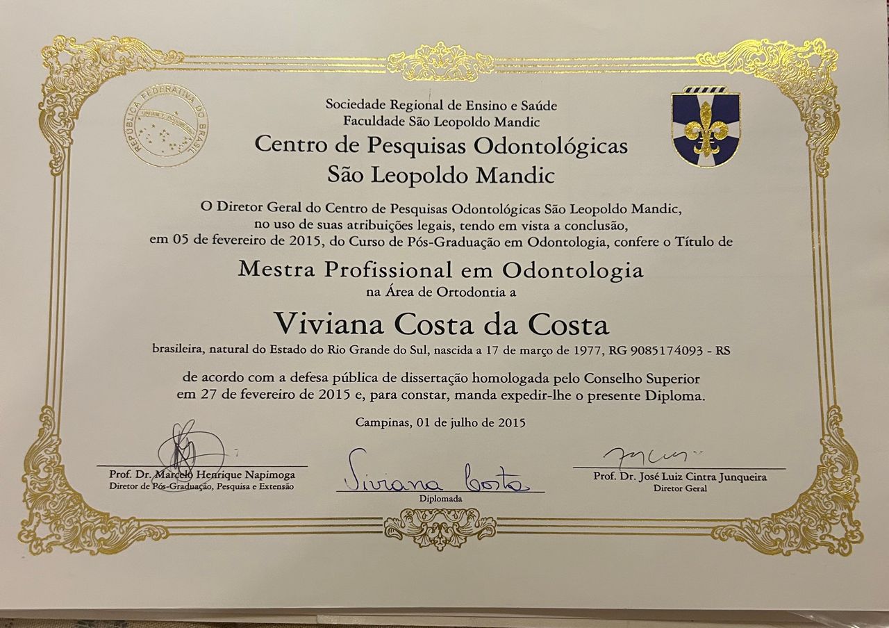 Cirurgiã dentista, especialista em Endodontia (tratamento de Canal) e Ortodontia (aparelhos dentários)
