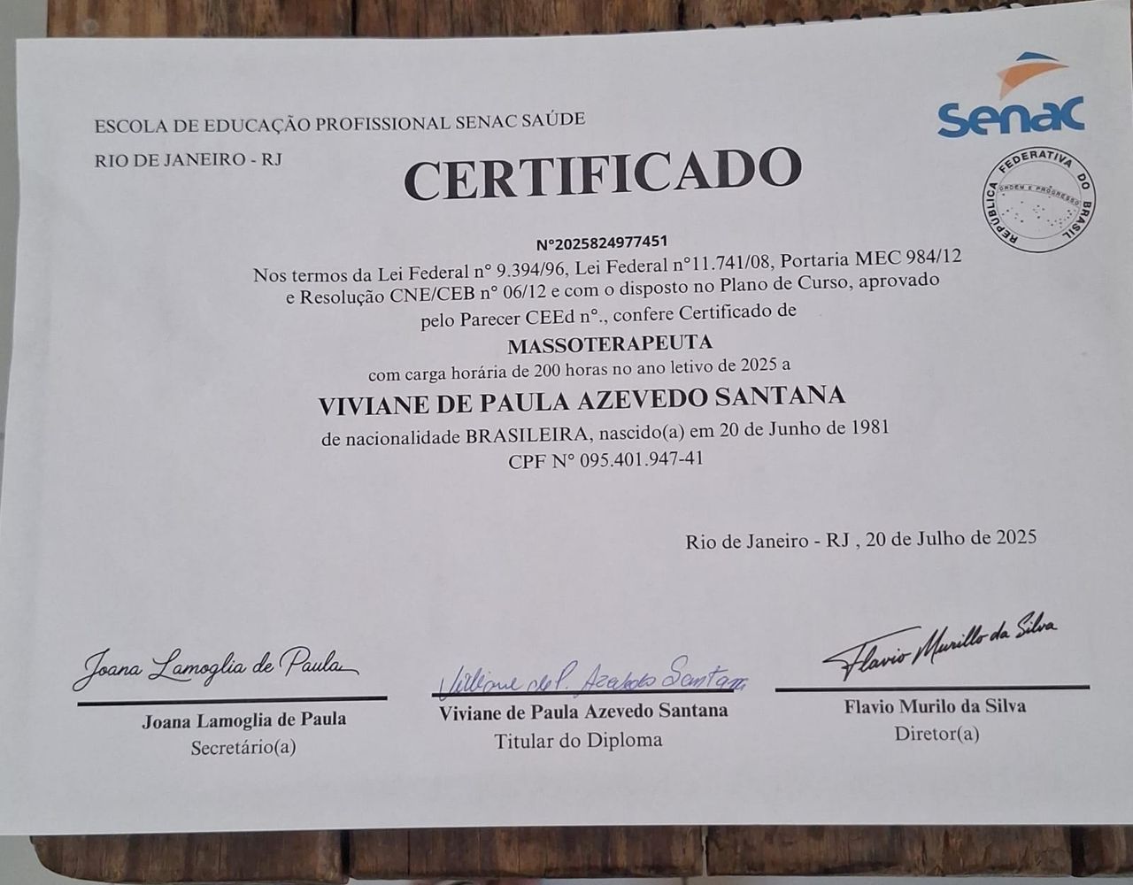 Quais são as principais especialidades de Viviane de Paula Azevedo Santana?Viviane de Paula Azevedo Santana é terapeuta complementar. Te mostramos alguns dos serviços oferecidos pelo especialista graças à sua trajetória e vasta experiência: Primeira consulta Terapias Complementares e Alternativas, Teleconsulta, Psicoterapia.