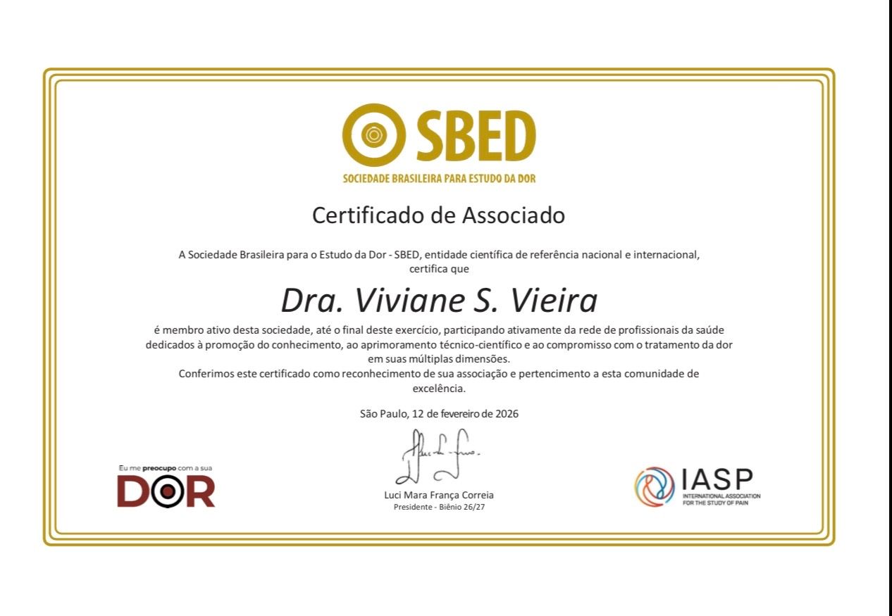 Quais são as principais especialidades de Viviane dos Santos Vieira?Viviane dos Santos Vieira é médica clínica geral. Te mostramos alguns dos serviços oferecidos pelo especialista graças à sua trajetória e vasta experiência: Consulta em Clínica da Dor, Consulta de retorno, Consulta especialista em dor, Aplicação da toxina botulínica, Aplicação de toxina botulínica para enxaqueca, Reabilitação neurofuncional, Controle de dor, Estimulação Magnética Transcraniana (EMT), Infiltração do joelho, Terapias Integrativas.