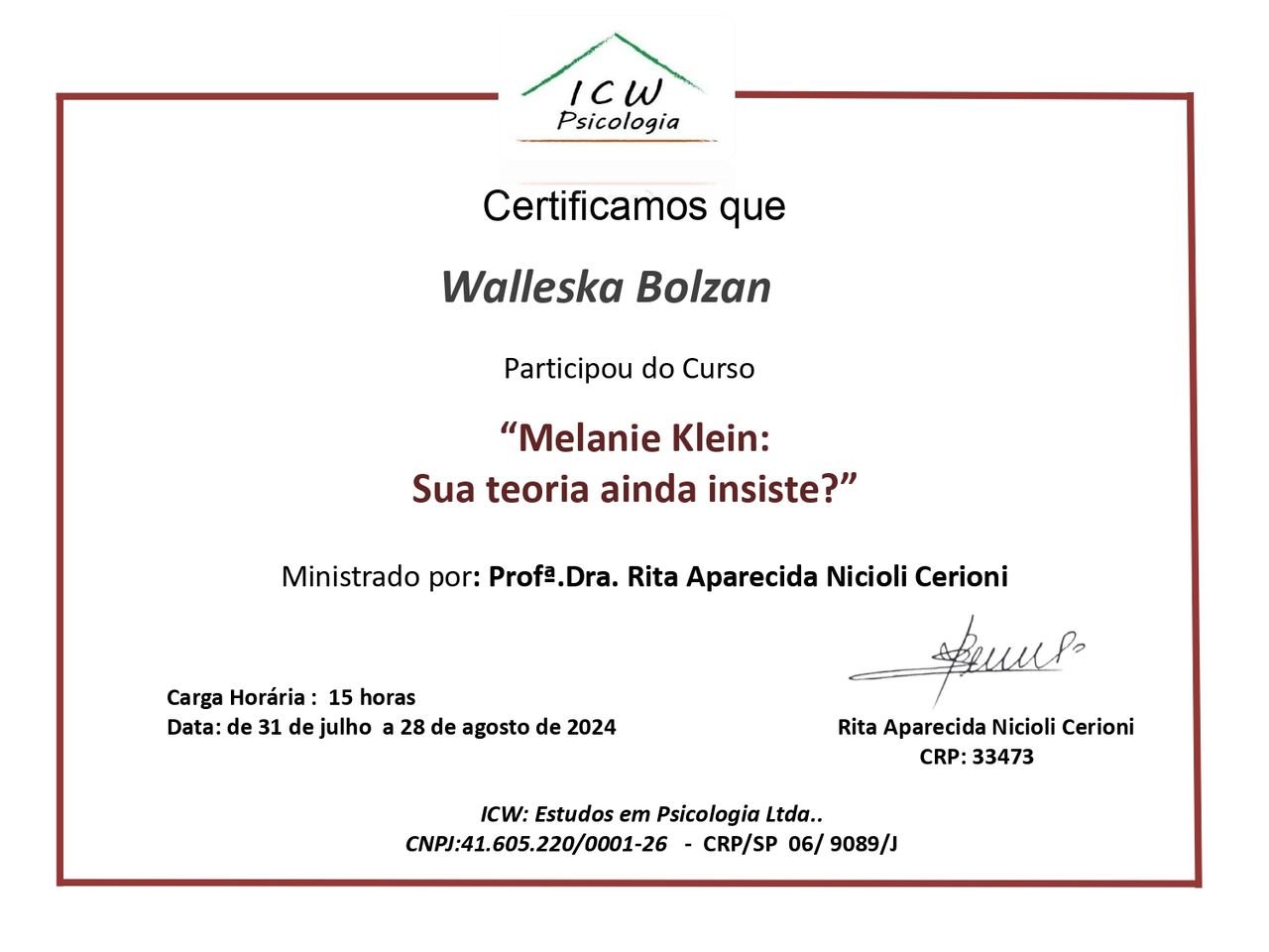 Atualmente, estou me especializando em psicanálise para aprofundar ainda mais meu olhar clínico e oferecer um atendimento com ainda mais qualidade e empatia.