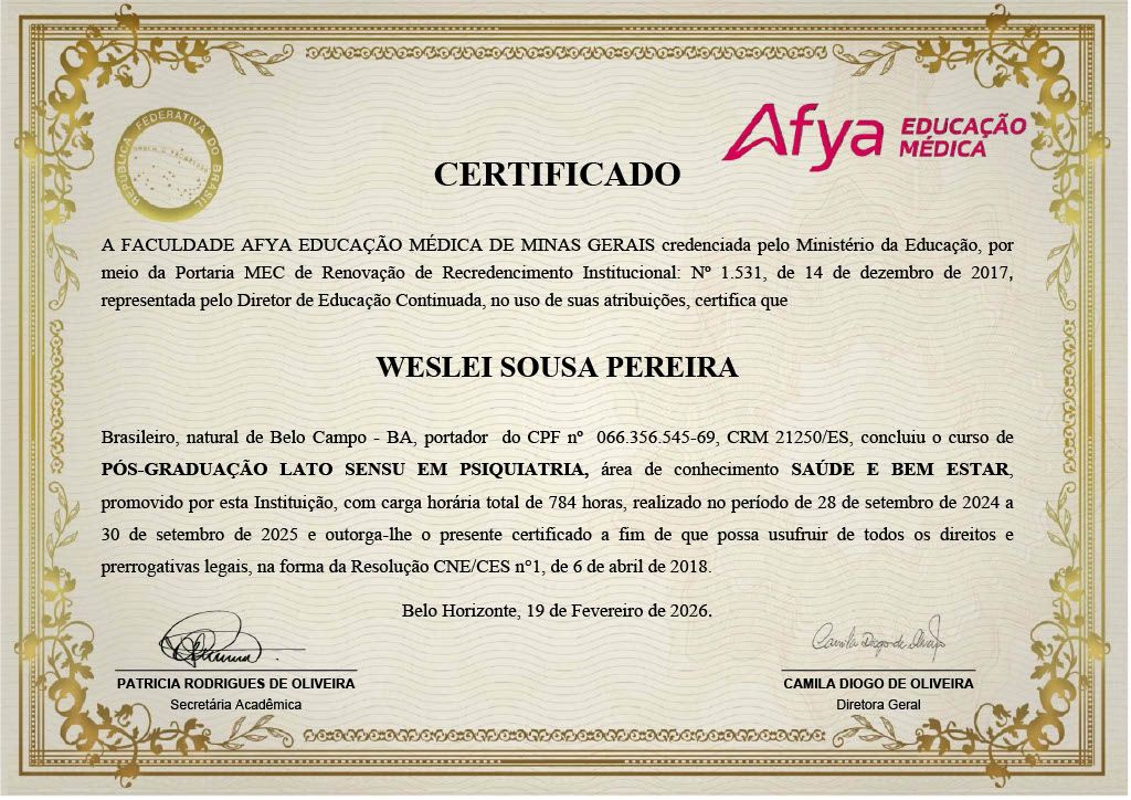 Sou o Dr. Weslei Sousa, médico Pós graduado em Psiquiatria.