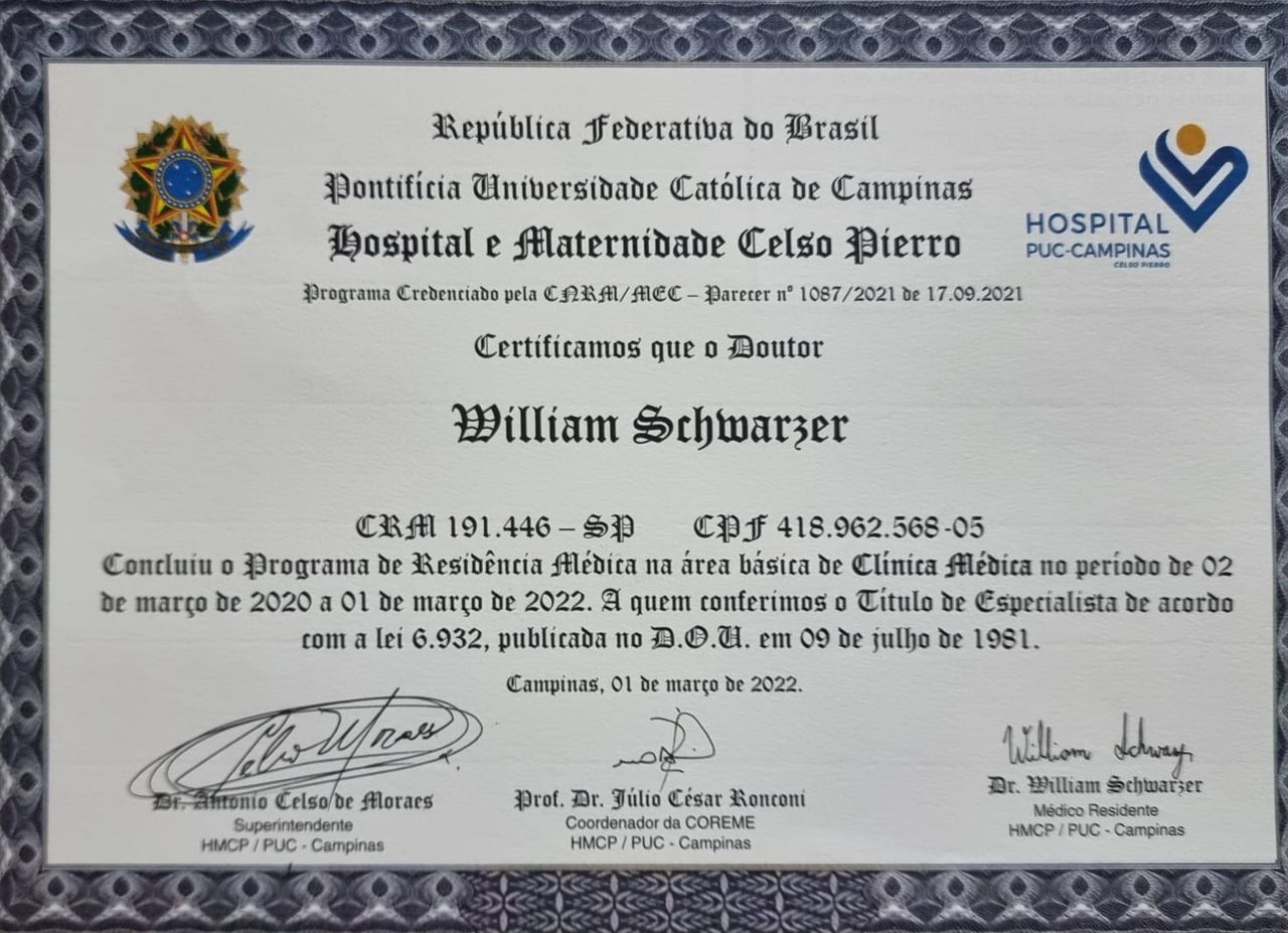 Dr William Schwarzer além de simpático, é muito atencioso, educado, cuidadoso, nada tenho a dizer que o desabone. Estudioso, com vasto conhecimentos e paciente nas suas explicacçoes e orientações ao paciente.