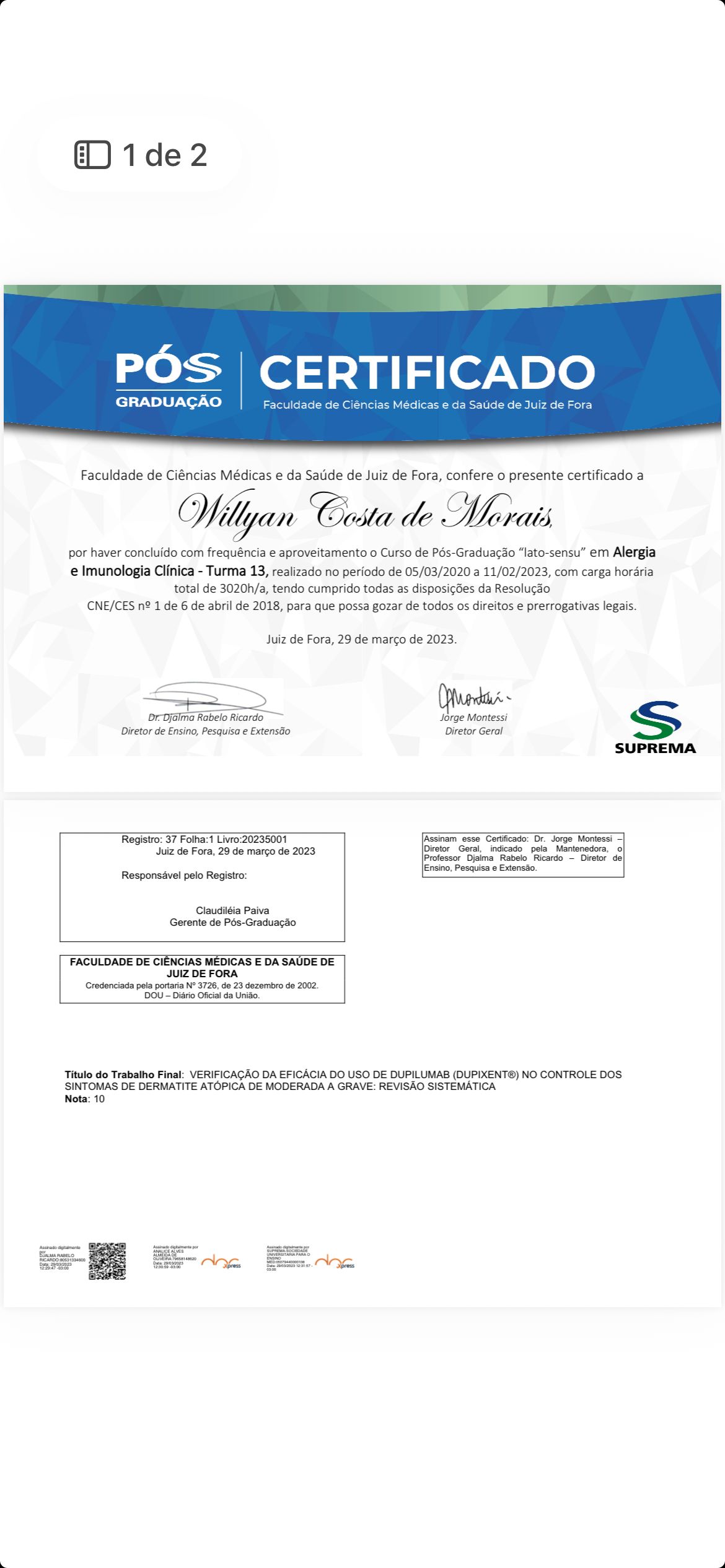 Atuação em Alergia e ImunologiaGraduado em Medicina - IMESResolutivo, empático e atento ao paciente.