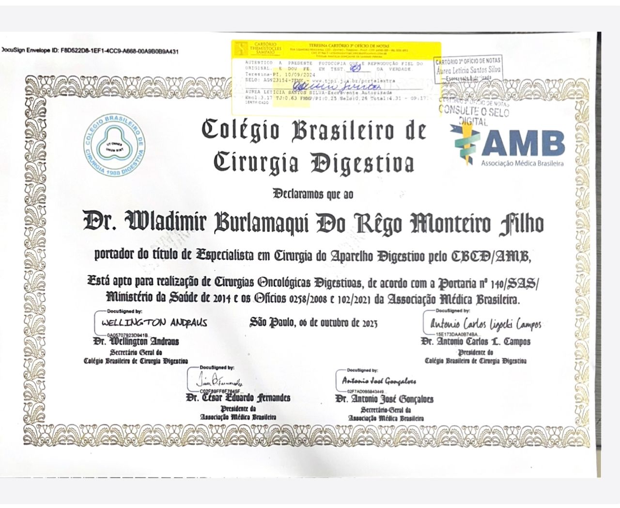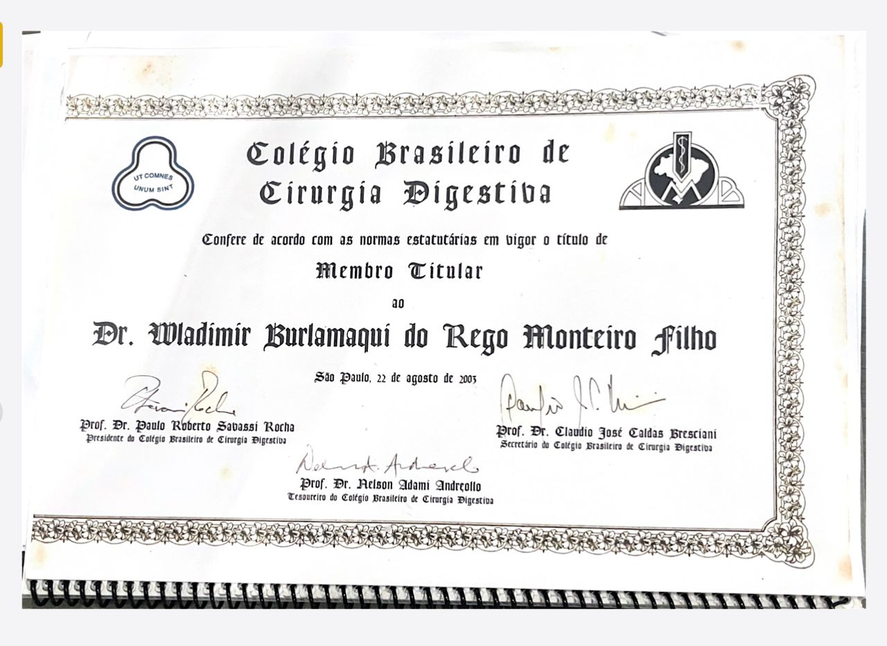 • Gastro&Procto Wladimir Burlamaqui • Primeira consulta Cirurgia do Aparelho Digestivo •
