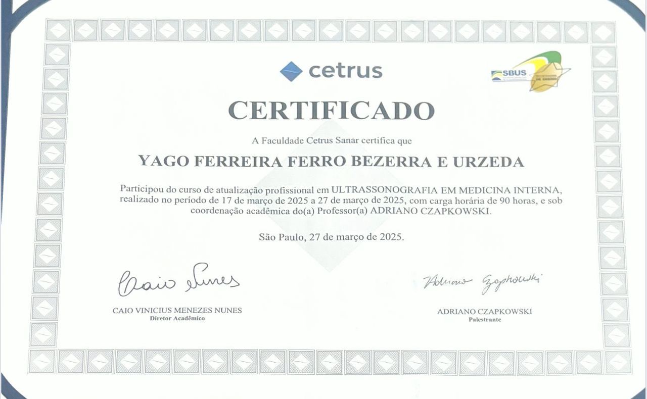 Como posso marcar uma consulta com Yago Urzeda?O calendário que Yago Urzeda exibe em seu perfil na Doctoralia é atualizado em tempo real. Tudo o que precisa é escolher o dia e a hora que forem mais convenientes para você. O agendamento é gratuito e você também recebe um lembrete antes da consulta.
