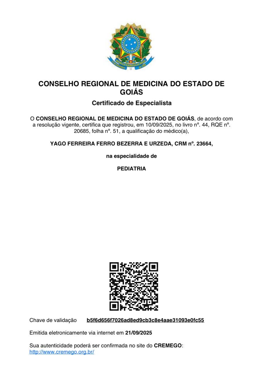 Número de registro: CRM GO 23664 - RQE não encontrado para Pediatria