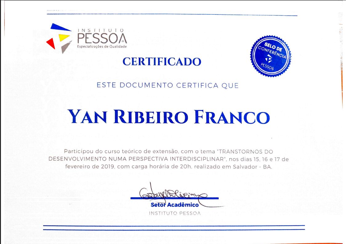 Quando poderia me consultar com Yan Franco?Yan Franco costuma ter horários disponíveis dentro da mesma semana ou para a semana seguinte. Verifique o calendário: você verá o primeiro horário disponível, atualizado em tempo real. Caso o horário sugerido não funcione para você, verifique outras datas. Agendar uma consulta é sempre imediato e gratuito.