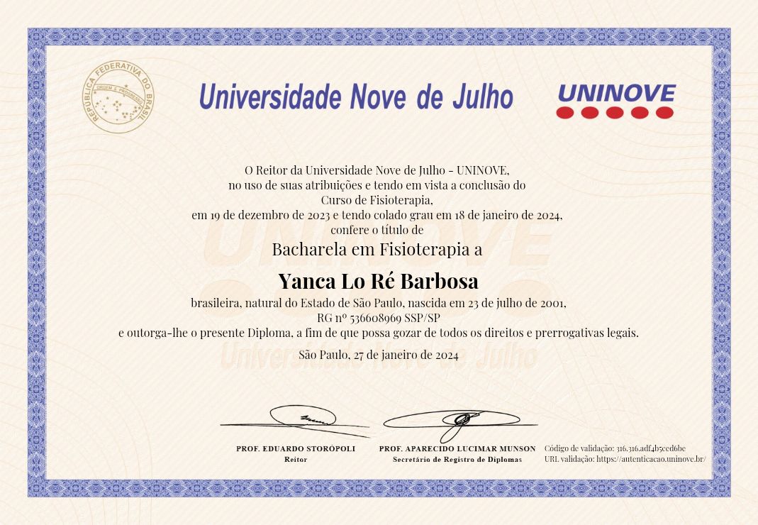Quais são as principais especialidades de Yanca Lo Ré Barbosa ?Yanca Lo Ré Barbosa é fisioterapeuta. Te mostramos alguns dos serviços oferecidos pelo especialista graças à sua trajetória e vasta experiência: Retorno de consultas Fisioterapia, Massagem relaxante, Alongamento muscular, Atendimento Ambulatorial de Fisioterapia, Liberação miofascial, Treinamento funcional, Massagem desportiva, Aula de Pilates com Bola, Pilates, FISIO PILATES 290.