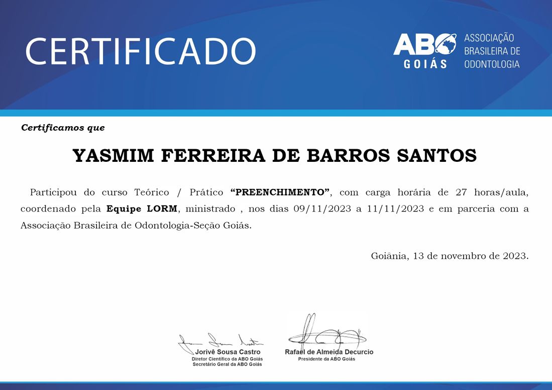 Sou Yasmim, cirurgiã-dentista especializada em Implantes, Periodontia e Estomatologia, com vasta experiência em diagnósticos bucais, implantes dentários e atendimentos odontológicos gerais. Meu compromisso é oferecer cuidados de excelência, combinando conhecimento técnico, tecnologia avançada e uma abordagem humanizada para garantir a saúde e o bem-estar dos meus pacientes.