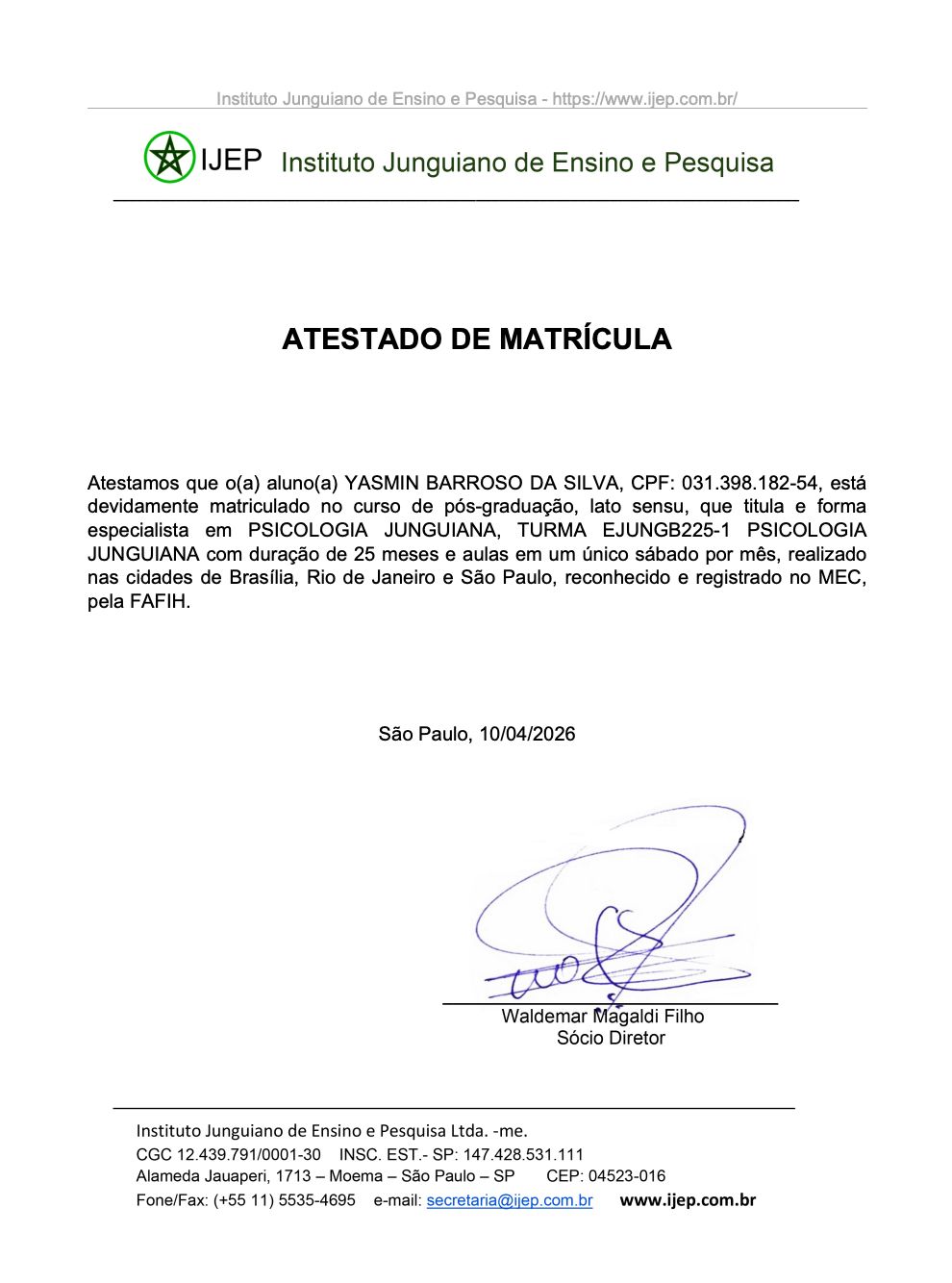 Em quais idiomas Yasmin Barroso da Silva atende?Yasmin Barroso da Silva atende em Português.