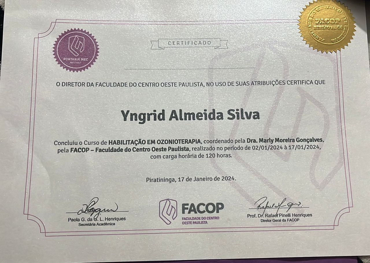 Sou ozonioterapeuta habilitada, atuando com foco em tratamentos integrativos que promovem saúde, alívio de dores, equilíbrio do organismo e melhora da qualidade de vida, sempre com responsabilidade, segurança e protocolos adequados.