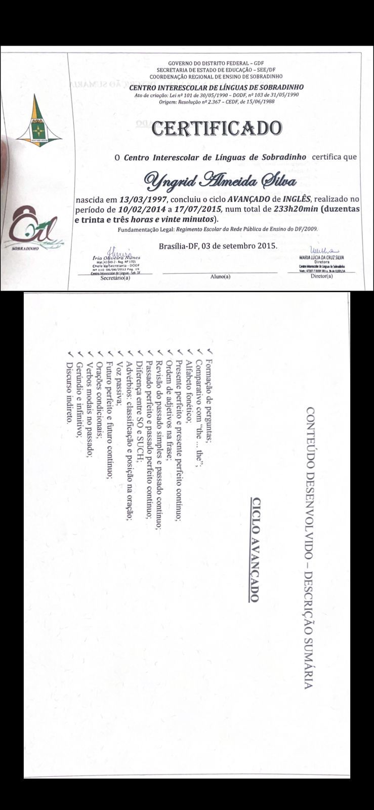 Em quais idiomas Yngrid Almeida Ferreira da Silva atende?Yngrid Almeida Ferreira da Silva atende em Inglês.
